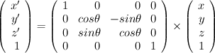 Provide the 4x4 matrices in row,column format for a set of Geometric transformations that include 30 degree rotation, translation of 50 in x direction and -100 in y direction, and with a scaling of 1.5 applied in both the x and y directions.