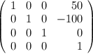 Provide the 4x4 matrices in row,column format for a set of Geometric transformations that include 30 degree rotation, translation of 50 in x direction and -100 in y direction, and with a scaling of 1.5 applied in both the x and y directions.